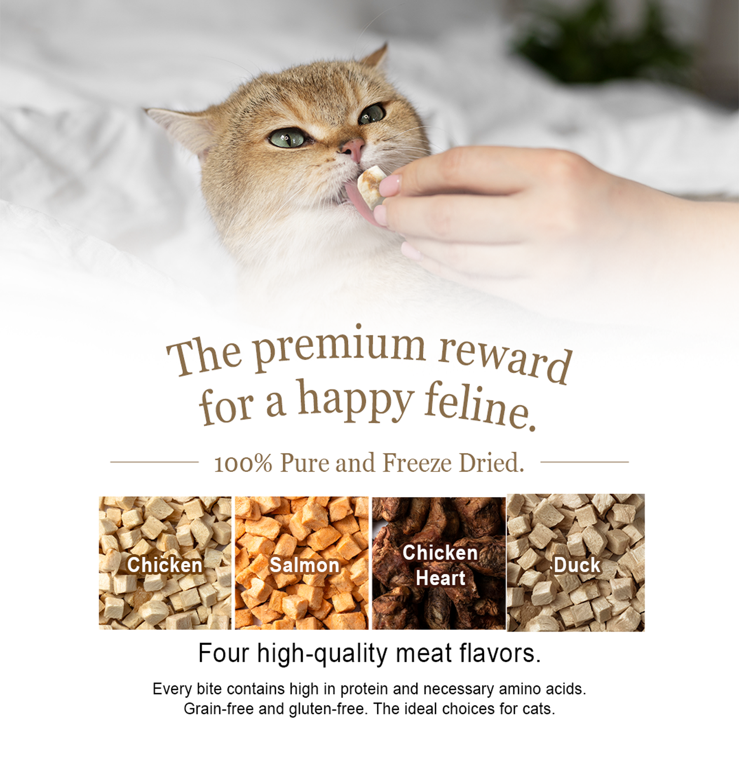 Высококачественные, сублимированные лакомства, состоящие из одного ингредиента, на 100% натуральные и не содержат зерна. Они идеально подходят для кошачьего рациона. Их абсолютная свежесть привлекает даже самых привередливых едоков. Будь то награда за дрессировку, вкусное угощение или изысканный гарнир к блюду, эти аппетитные кусочки удовлетворят любое желание вашего питомца.